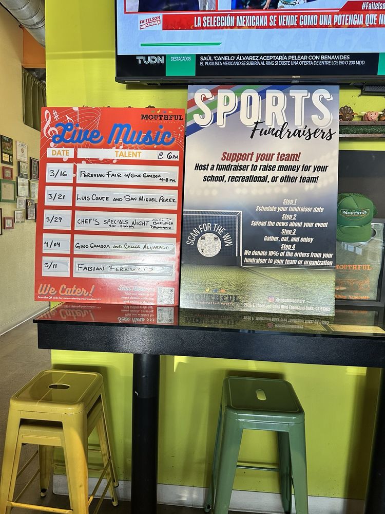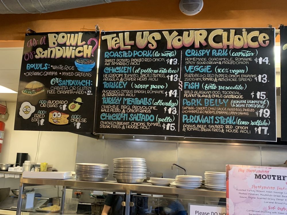 Mouthful Eatery, located on E Thousand Oaks Blvd, offers a variety of options from salads to sandwiches to diners. The menu includes Pork Belly Sandwich, Veggie Sandwich, Blackened Halibut Quinoa Bowl, Pork Belly Rice Bowl, and more. Customers rave about the flavorful dishes like the Chicken Saltado, Turkey Meatball, and Fish Plate. The bread for sandwiches is freshly made daily, adding to the overall experience. The cozy ambiance and friendly staff make dining here a pleasant experience. Whether you're looking for a quick lunch or a group dinner, Mouthful Eatery caters to all needs. The option to customize bowls with mix and match sides adds a personal touch to the dining experience. Don't forget to try the homemade Flan or Caramel cookies for dessert. With great service, delicious food, and a welcoming atmosphere, Mouthful Eatery is a must-visit spot for a satisfying meal.