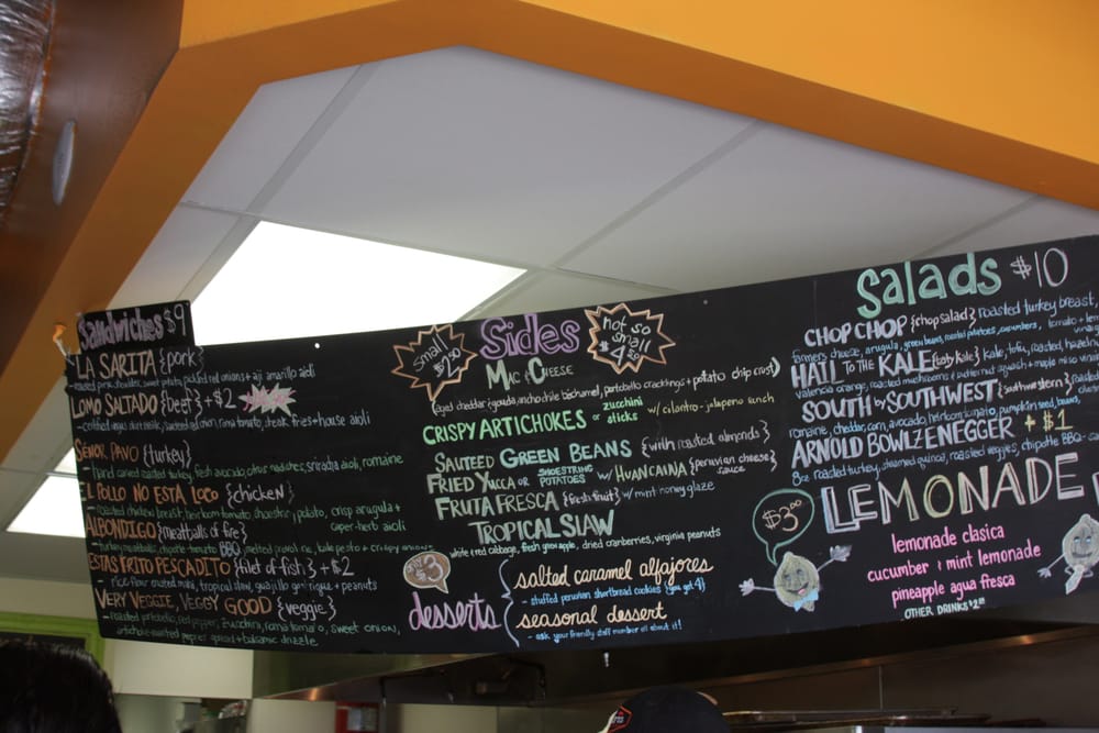 Wok Sauted marinated chicken breast with red onions & roma tomatoes, steak fries + aji Amarillo aioli